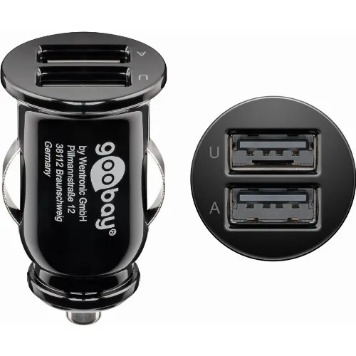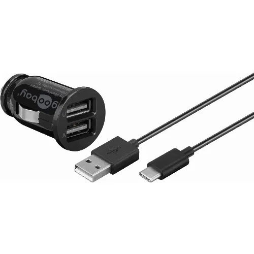 Goobay Dobbel USB-billader USB-C™, USB-A (12 W) billadeadapter med 2x USB-A og USB-C™-kabel 1,0 m (svart)