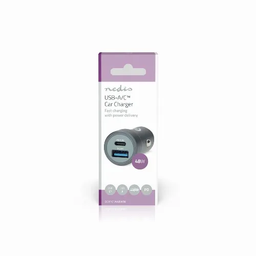 Nedis Billader | 48 W | 1.5 / 2.0 / 3.0 A | Antall utganger: 2 | Porttype: USB-A / USB-C™ | Automatisk Spenning Utvalg