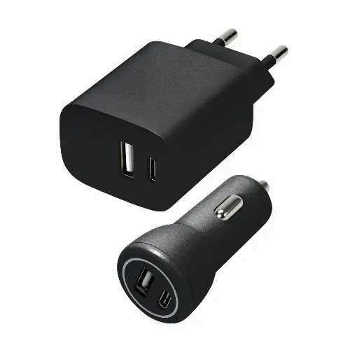 Speedlink Vegg- og billadersett USB-A og USB-C 15W, svart
