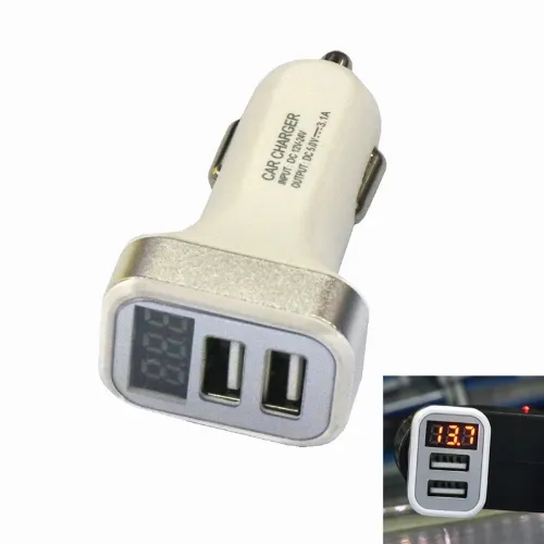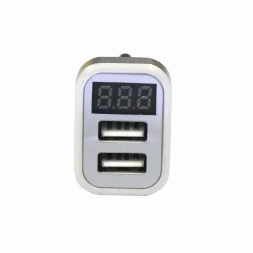 USB-billader med 2 USB-porter og display, sølv