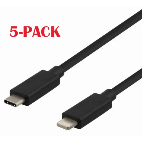 5-PACK Kabel USB-C - Lightning, 2,4 A, 1 m, svart