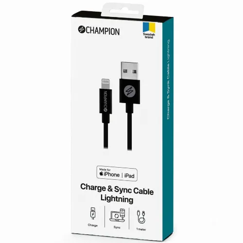 Champion USB-A til Lightning-kabel 1 m svart