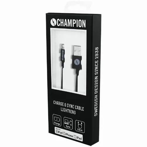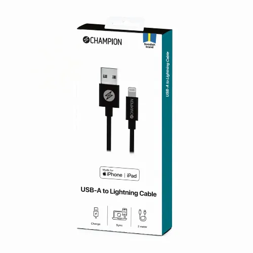 Champion USB-A til Lightning-kabel 2 m svart