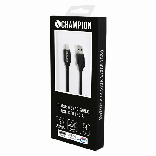 Champion USB-A til USB-C-kabel 3 m, svart