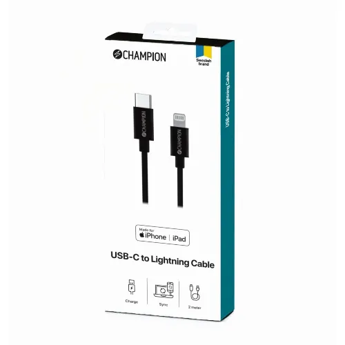 Champion USB-C til Lightning-kabel 2 m svart