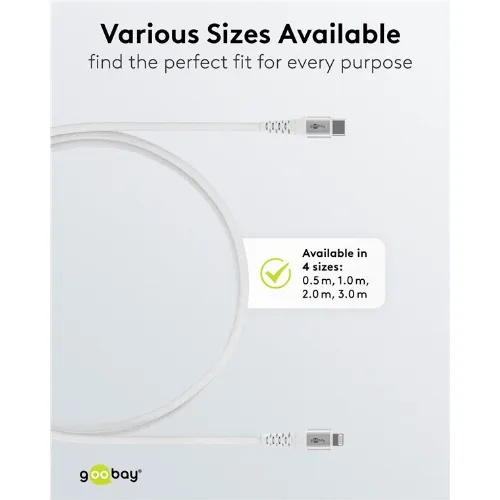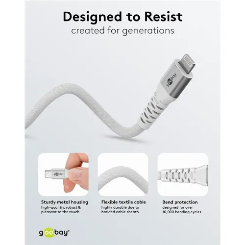 Goobay Lightning-USB-C™ supermyk tekstilkabel med metallkontakter, 1 m, hvit MFi-sertifisert, elegant og ekstra robust lade- og synkroniseringskabel for Apple iPhone/iPad (hvit)