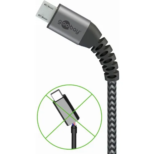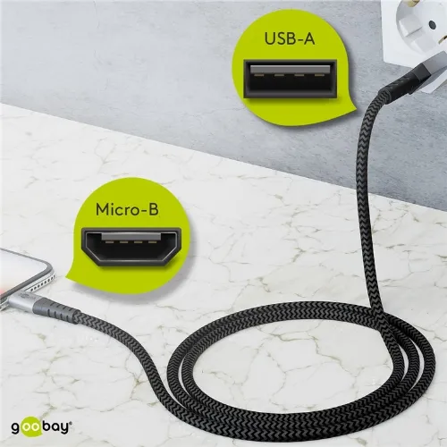 Goobay Micro-USB til USB-A tekstilkabel med metallkontakter 1 m elegant og ekstra robust tilkoblingskabel for enheter med Micro-USB-tilkobling