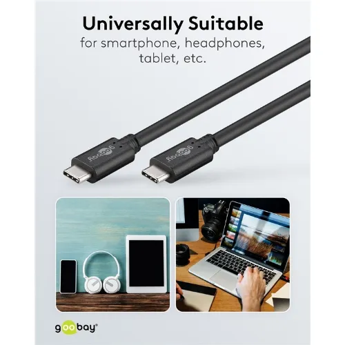 Goobay Synkroniser og lad superrask USB-C™-kabel (USB 3.2 Gen 1), USB-PD, 1,5 m USB-C™-plugg > USB-C™-plugg
