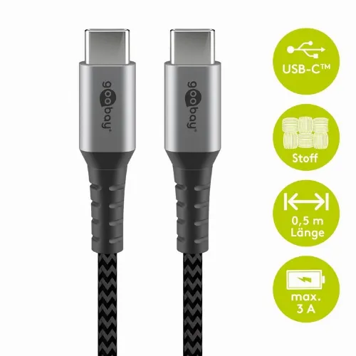 Goobay USB-C™ til USB-C™ tekstilkabel med metallkontakter 0,5 m elegant og ekstra robust tilkoblingskabel for enheter med USB-C™-port