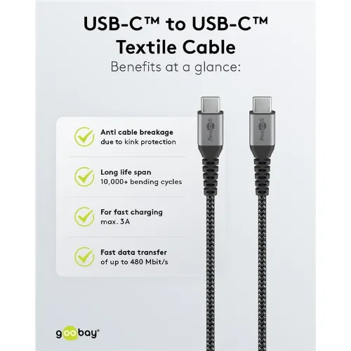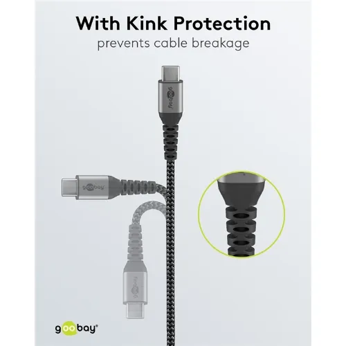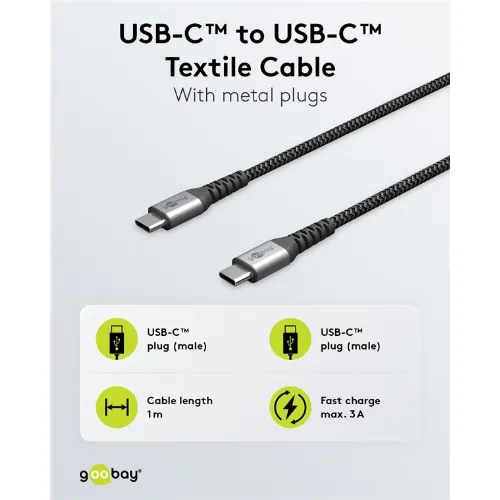 Goobay USB-C™ til USB-C™ tekstilkabel med metallkontakter 1 m elegant og ekstra robust tilkoblingskabel for enheter med USB-C™-port