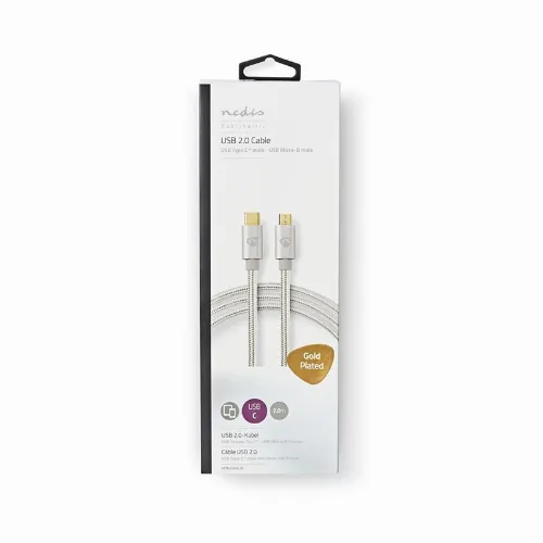 Nedis USB-kabel | USB 2.0 | USB-C™ Hann | USB Micro-B Han | 10 W | 480 Mbps | Gull belagt | 2.00 m | Rund | Flettet / Nylon | Aluminium | Deksel Vindusboks