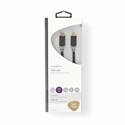 Nedis USB-kabel | USB 3.2 Gen 1 | USB-C™ Hann | USB-C™ Hann | 60 W | 4K@60Hz | 5 Gbps | Nikkel belagt | 1.00 m | Rund | PVC | Antrasitt | Vindus boks