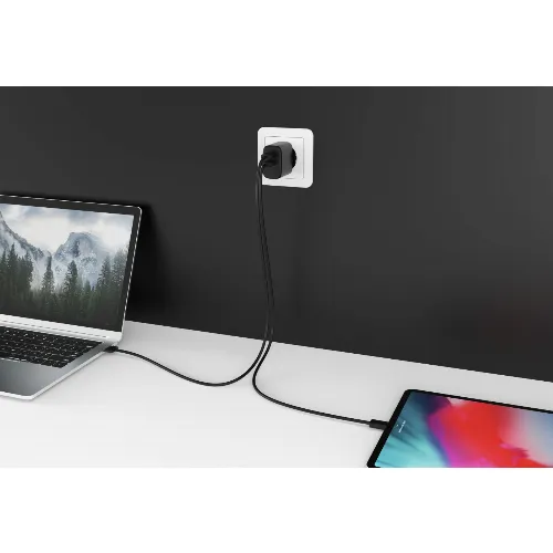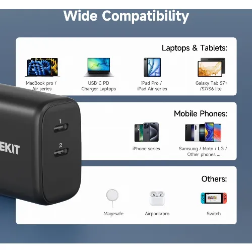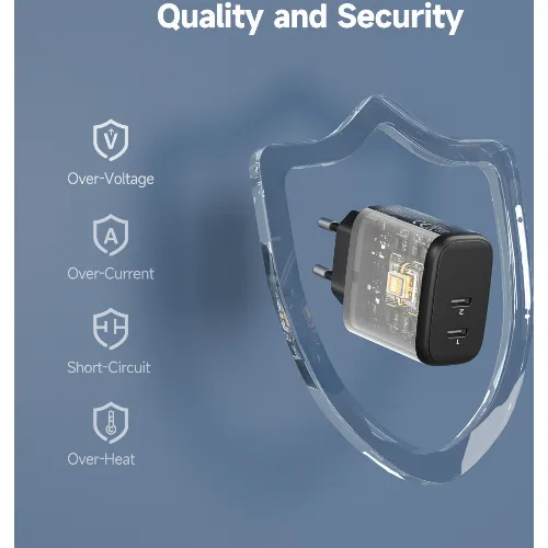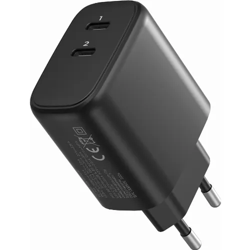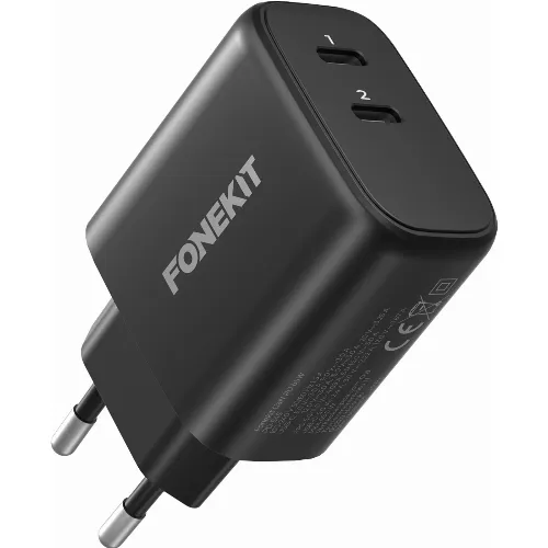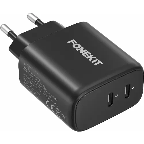 FoneKit GaN PD 65W AC-lader, USB-C + USB-C, svart