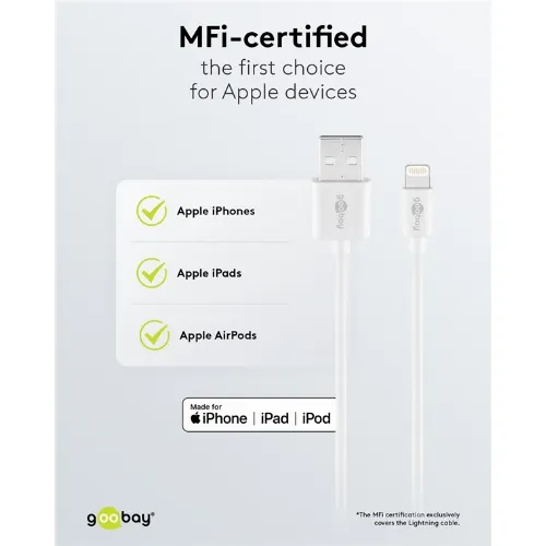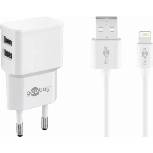 Goobay Apple Lightning Dual Charging Kit (12 W) Strømforsyningsenhet med 2x USB-kontakter og Apple Lightning-kabel 1 m (hvit)