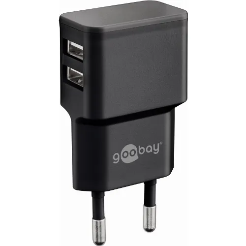 Goobay Apple Lightning Dual Charging Kit (12W) Strømforsyningsenhet med 2x USB-kontakter og Apple Lightning-kabel 1 m (svart)