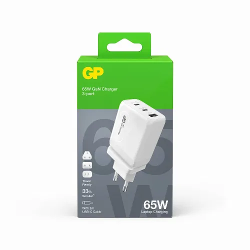 GP Vegglader GaN PD 65W Inkludert Reiseadapter
