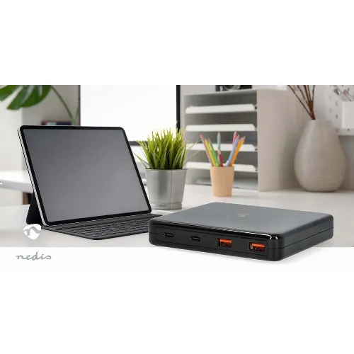Nedis Bordlader | 65 W | GaN | 1.5 / 2.0 / 2.5 / 3.0 / 3.25 A A | Antall utganger: 4 | USB-A / USB-C™ | Euro | 1.50 m | Automatisk Spenning Utvalg