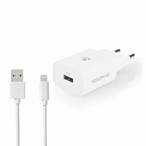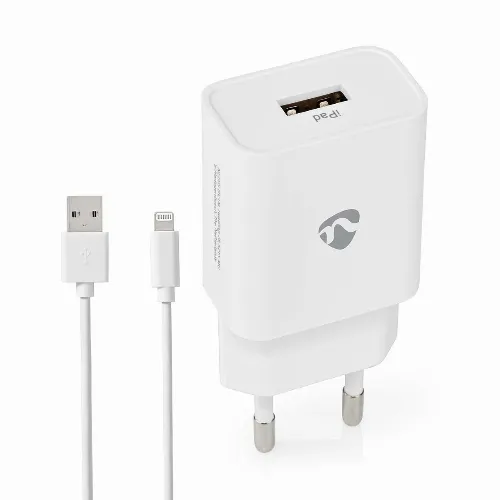 Nedis vegg lader | 12 W | 1x 2.4 A A | Antall utganger: 1 | USB-A | Lightning 8-Pin (Løs) Kabel | 1.00 m | Single Voltage Output | Hvit
