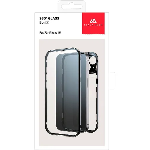 BLACK ROCK Mobildeksel 360° Glass Transp/Svart - iPhone 15