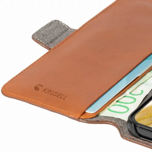 Krusell Leather Phone Wallet Galaxy S22 Cognac