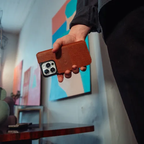 Krusell Leather Phone Wallet iPhone 13 Cognac
