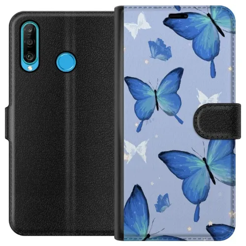 Lommeboketui til Huawei P30 lite med Blå sommerfugler motiv