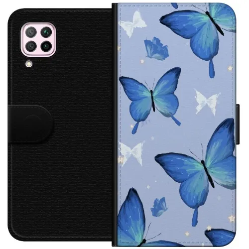 Lommeboketui til Huawei P40 lite med Blå sommerfugler motiv