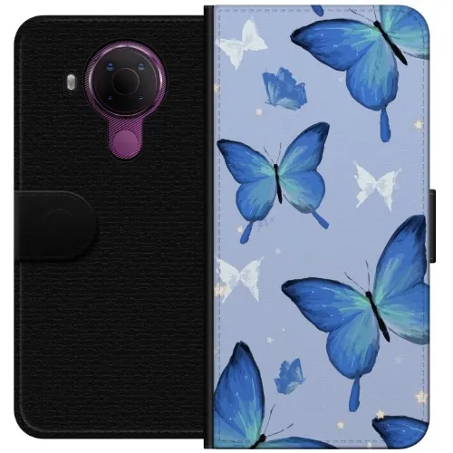 Lommeboketui til Nokia 5.4 med Blå sommerfugler motiv