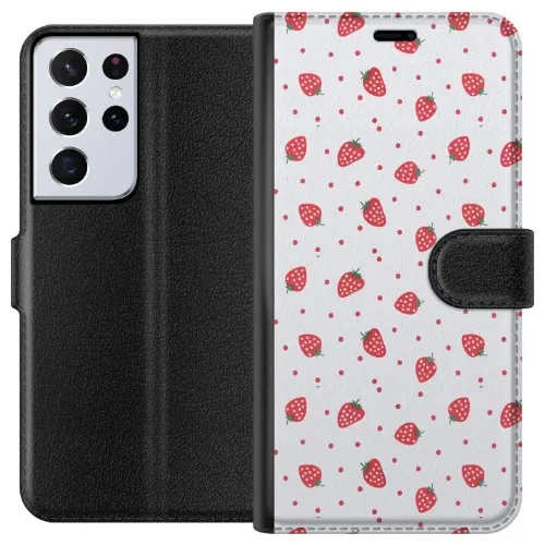 Lommeboketui til Samsung Galaxy S21 Ultra 5G med Jordbær motiv