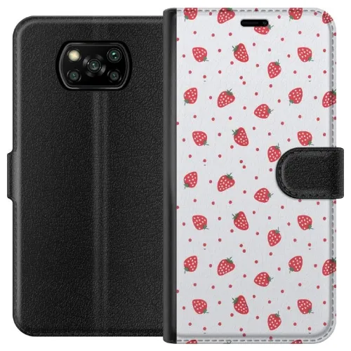 Lommeboketui til Xiaomi Poco X3 NFC med Jordbær motiv