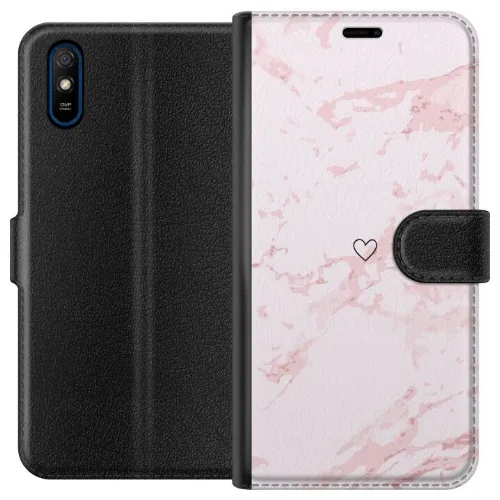 Lommeboketui til Xiaomi Redmi 9A med Rosa Hjerte motiv