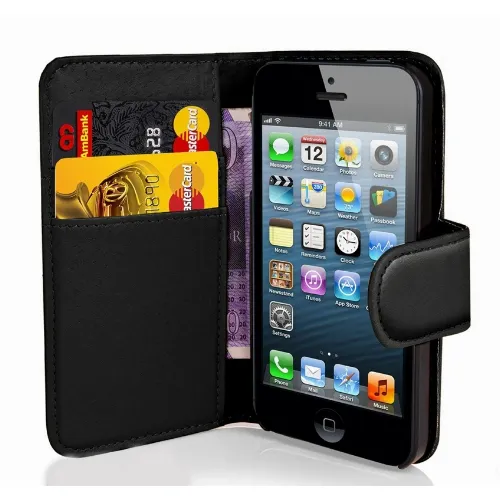 Lommebokveske i kunstlær, 2 kortspor for iPhone 7/8/SE, svart