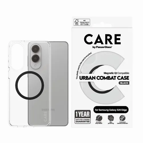 CARE by PanzerGlass - Flagship Case Transparent Urban Combat m. svart Qi kompatibel Samsung S25 Edge