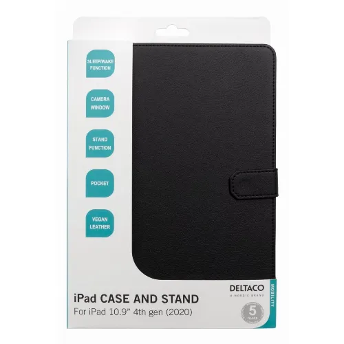 DELTACO iPad Air 4. generasjon 10,9" etui, vegansk lær, sleep/wake, stativ