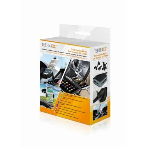 Technaxx bilholder for smarttelefoner + billader med 4x USB-port (TE08)